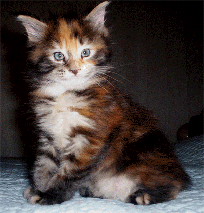La couleur de son pelage (brown torbie...très contrastée) lui donne un look très sauvage, qui est accentué par des pattes très épaisses pour une femelle.